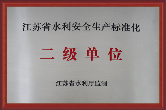 公司被評為重合同守信用企業、江蘇省水利安全生產標準化二級單位、AAA級資信企業、誠信示范企業、全國工程建設用戶滿意施工企業。